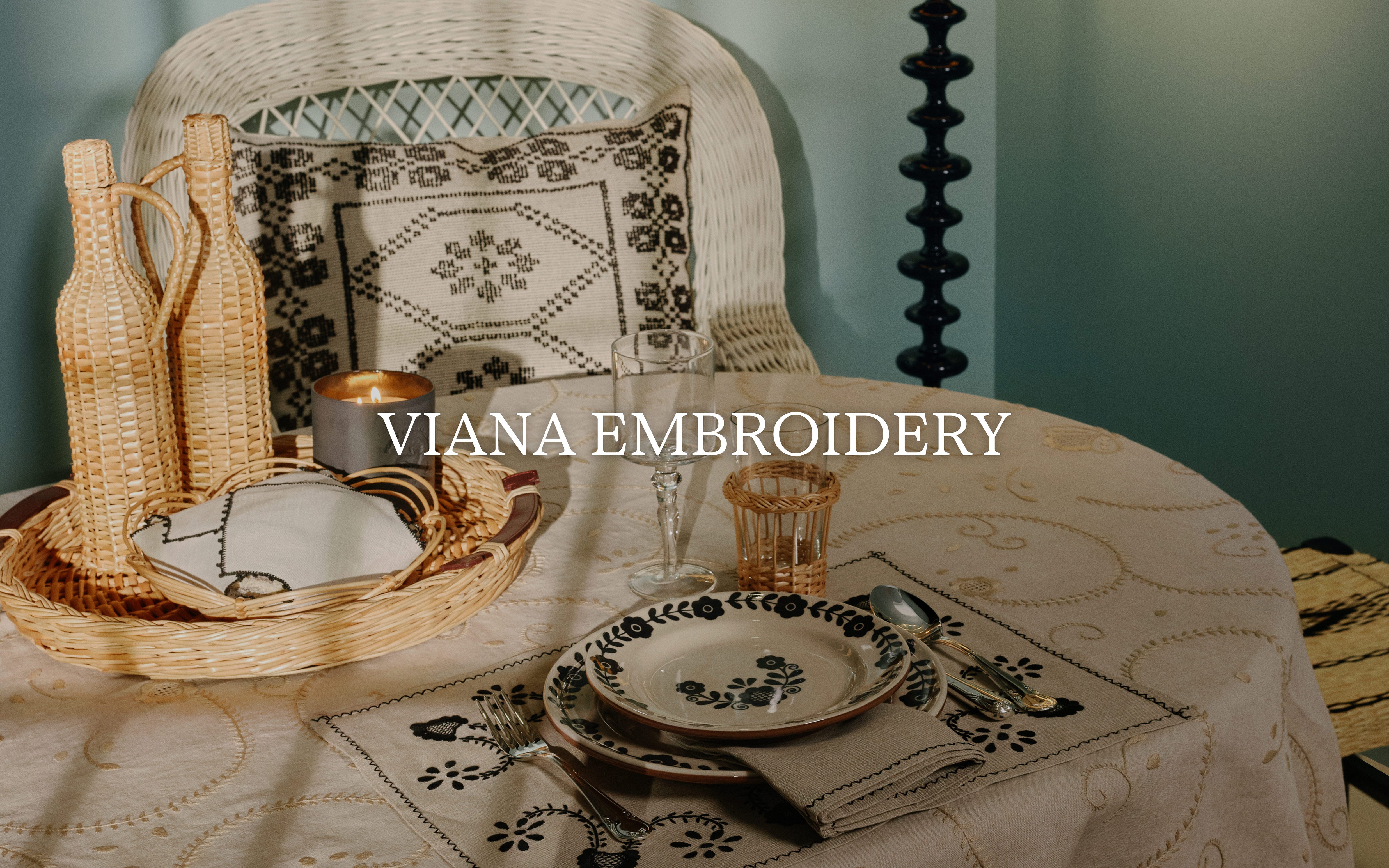 Our collection is inspired by this time-honored craft in more that one way, featuring delicately embroidered table linens, as well as hand-painted ceramic plates to create the most beautiful “Vianense” table setting.